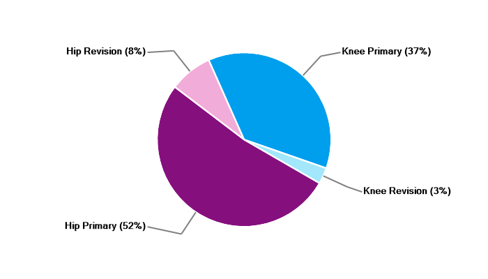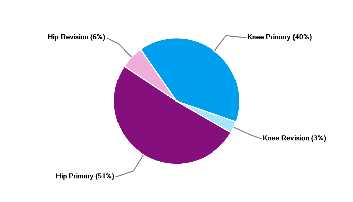 Primary hip replacement Revision hip replacement Primary total knee replacement Revision knee replacement |